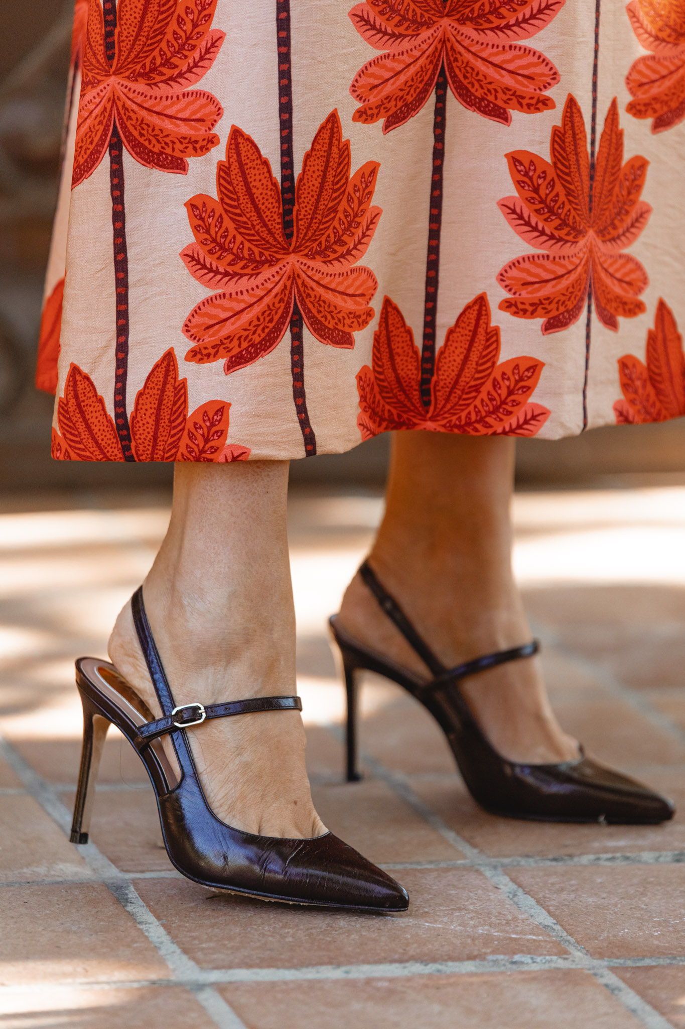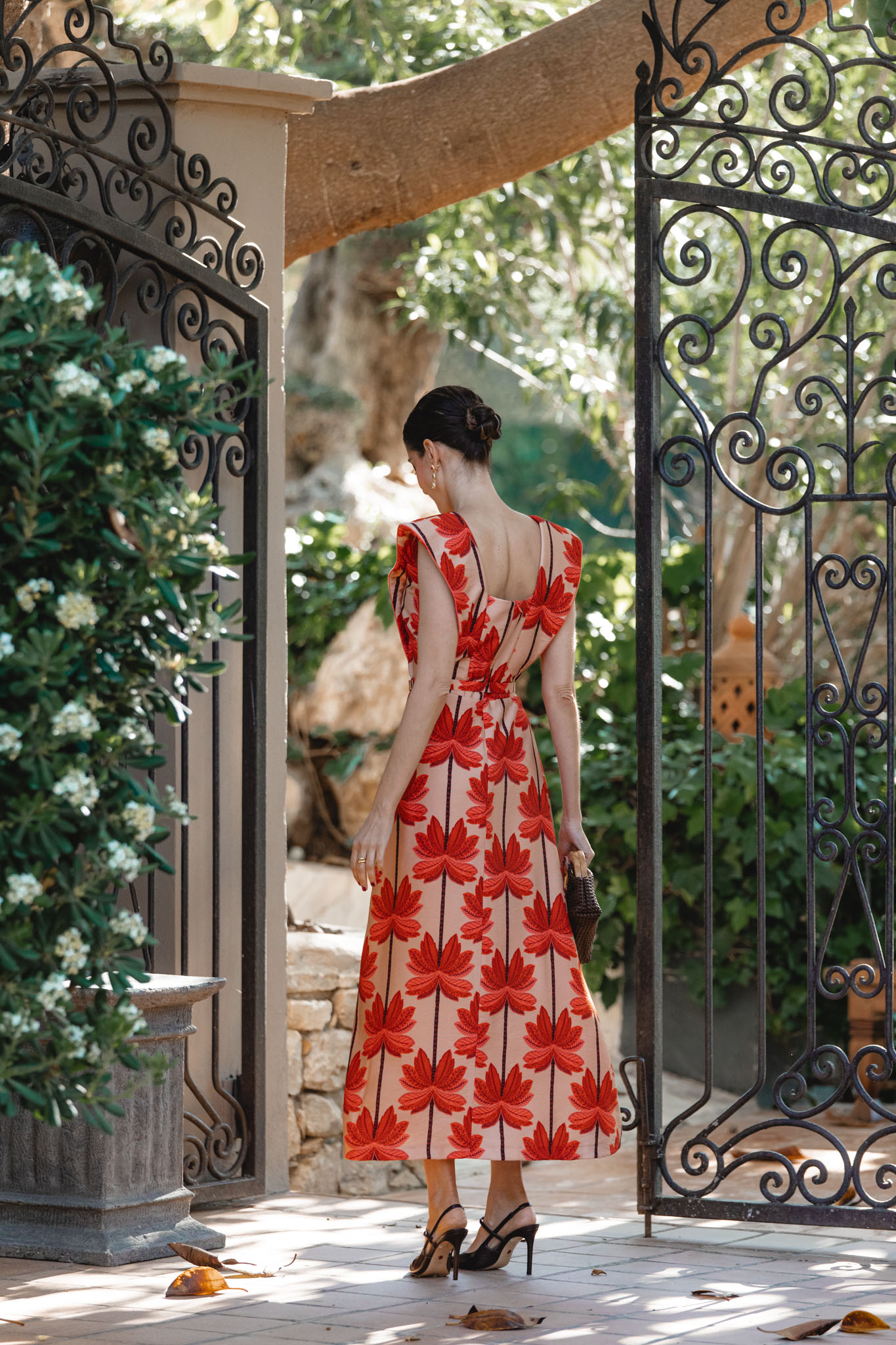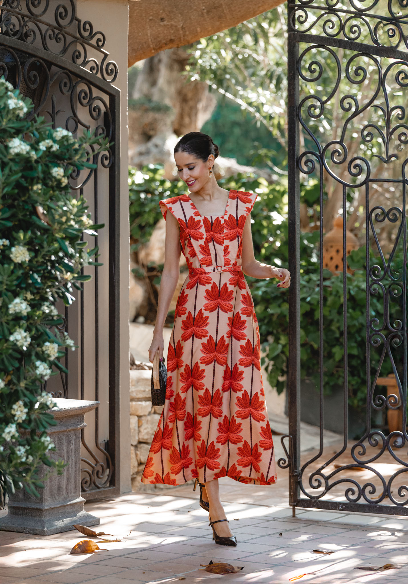 A la hora de elegir los accesorios, su paleta me ofreció un abanico enorme de posibilidades: naranja, nude, marrón o incluso burdeos. Finalmente me decanté por el marrón, una opción elegante y equilibrada: los zapatos de Magrit, el bolso de Masario y la pamela, también de Masario, que remata el conjunto con un toque sofisticado y muy de invitada de verano.