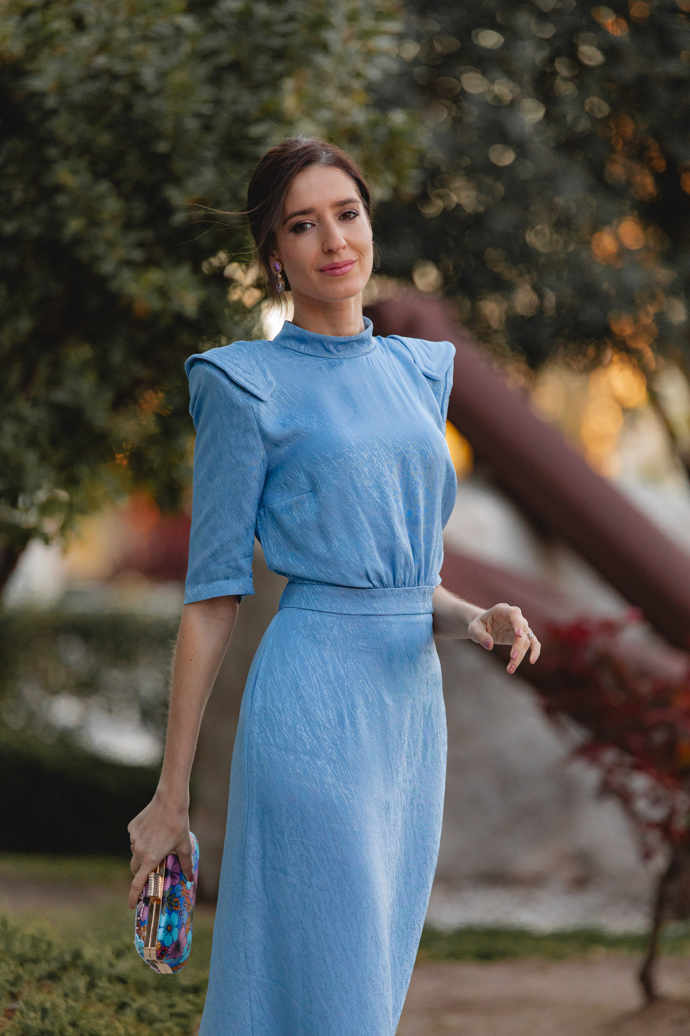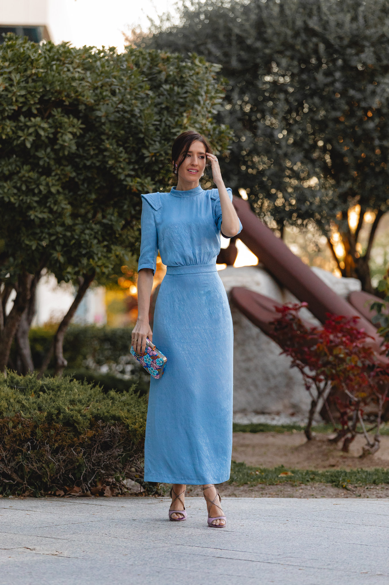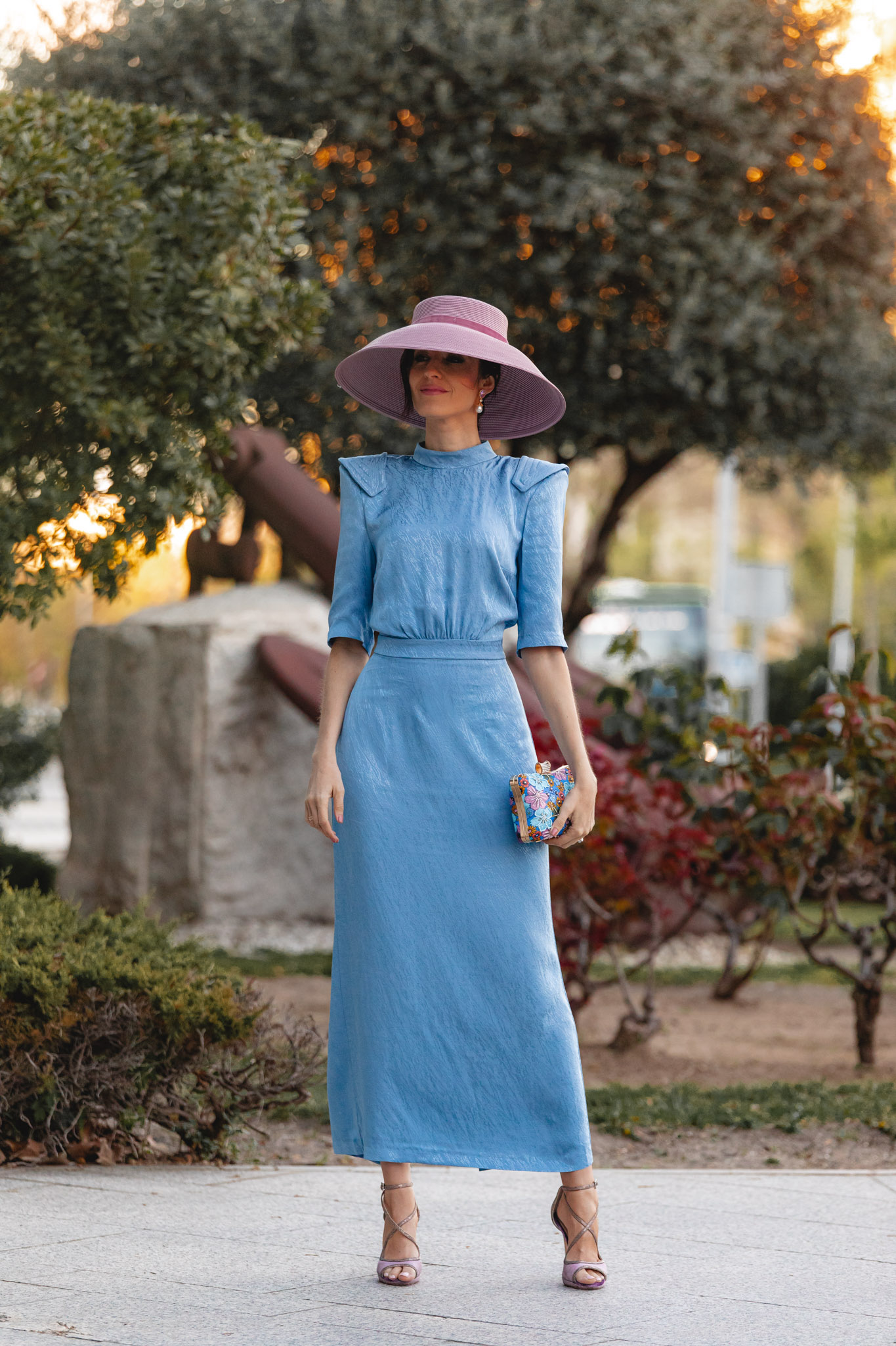 Hoy os traigo un look perfecto para esas invitadas de boda que buscan un toque vintage, elegante y diferente. Un estilismo que también me encanta para mamás de comunión, porque su precioso tono azul celeste —tan tendencia esta temporada— funciona de maravilla en este tipo de celebraciones.