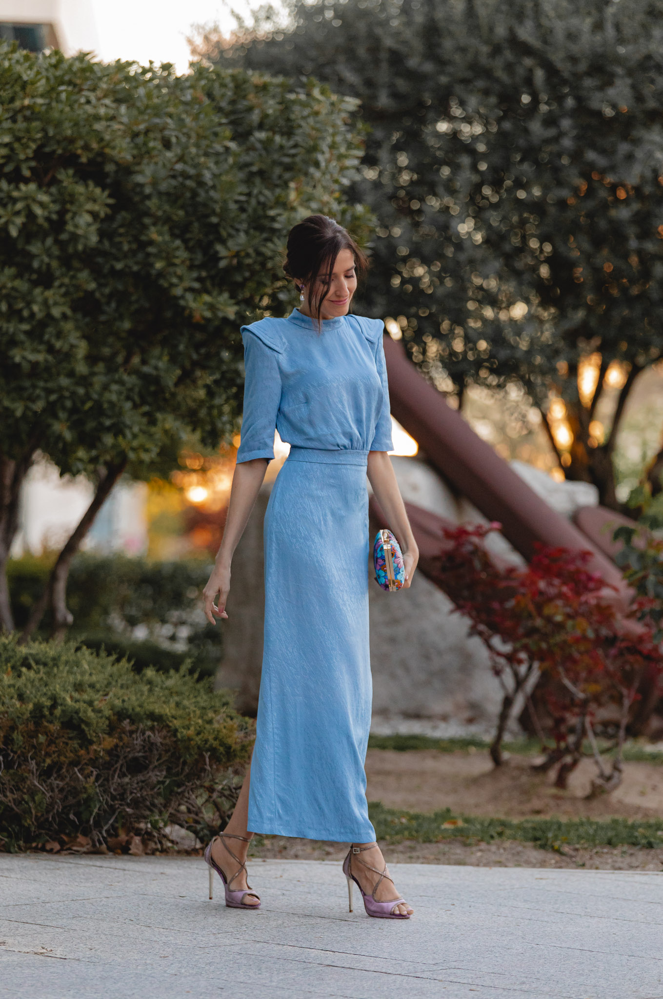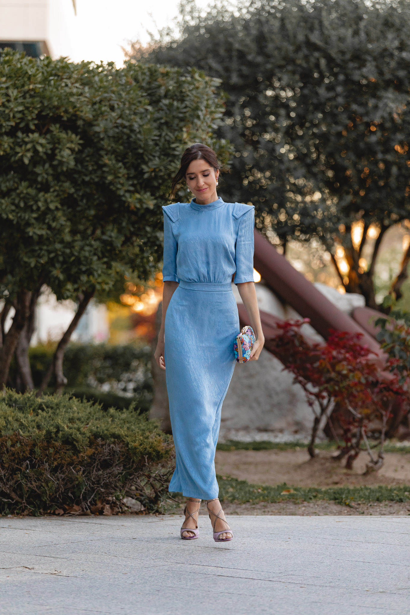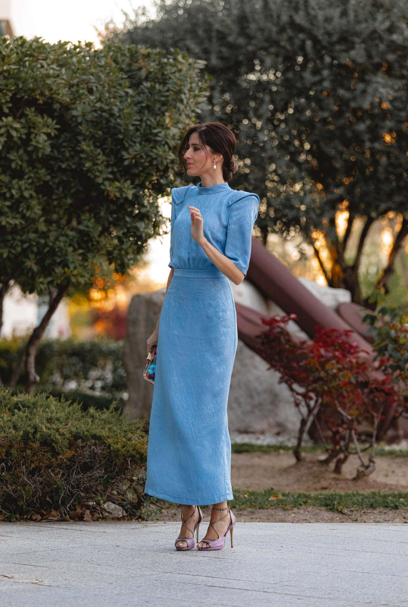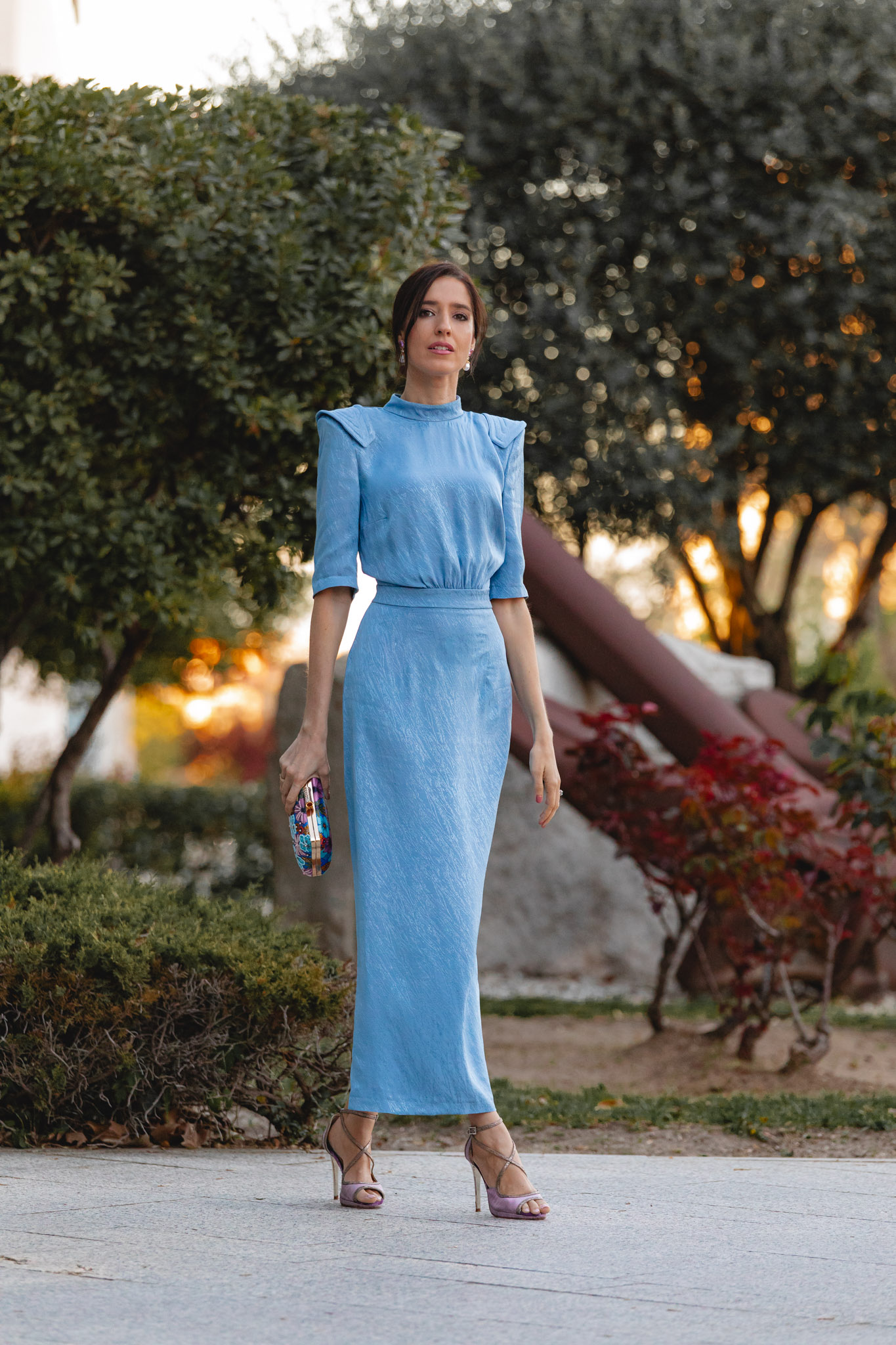 Hoy os traigo un look perfecto para esas invitadas de boda que buscan un toque vintage, elegante y diferente. Un estilismo que también me encanta para mamás de comunión, porque su precioso tono azul celeste —tan tendencia esta temporada— funciona de maravilla en este tipo de celebraciones.