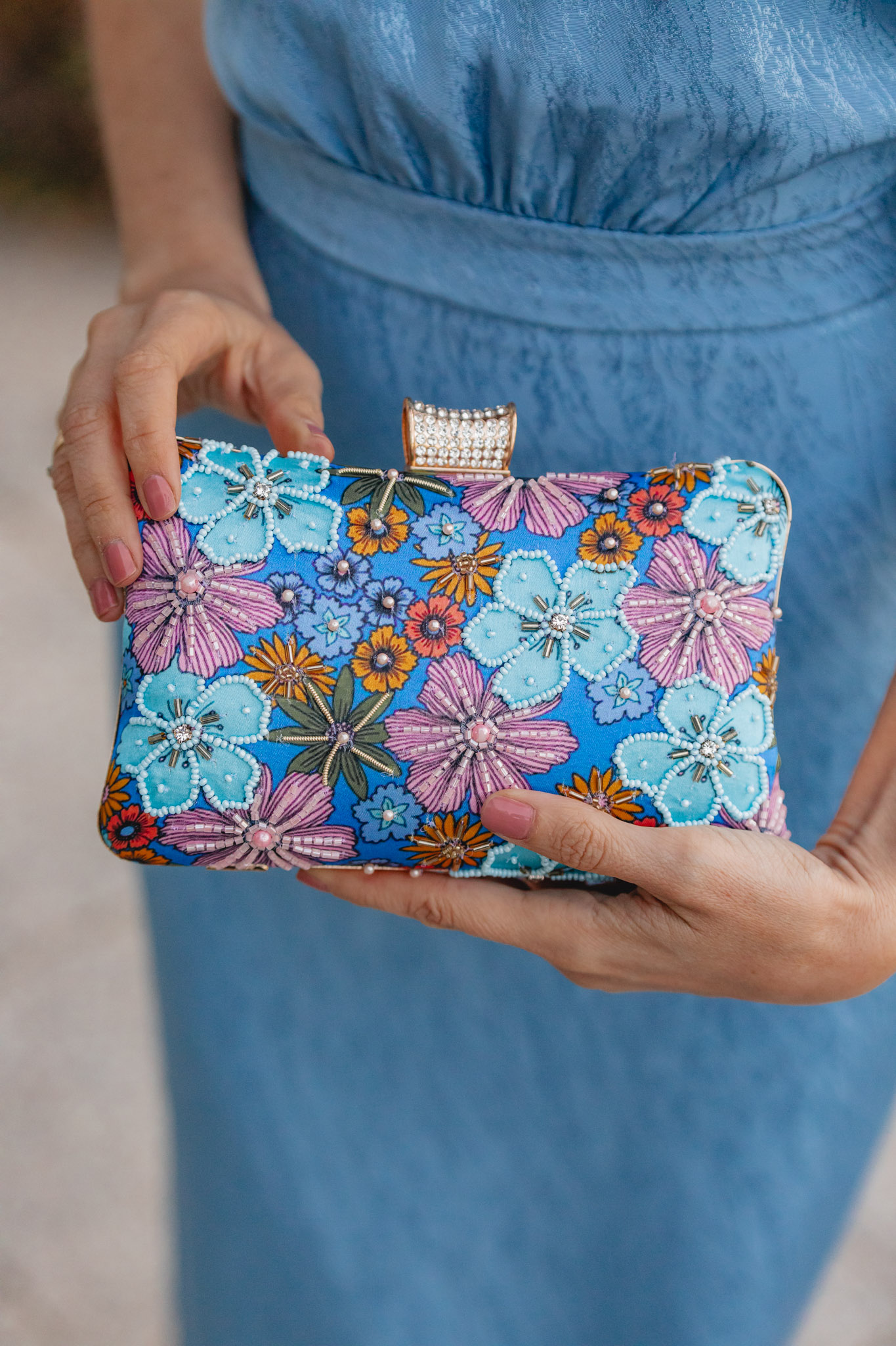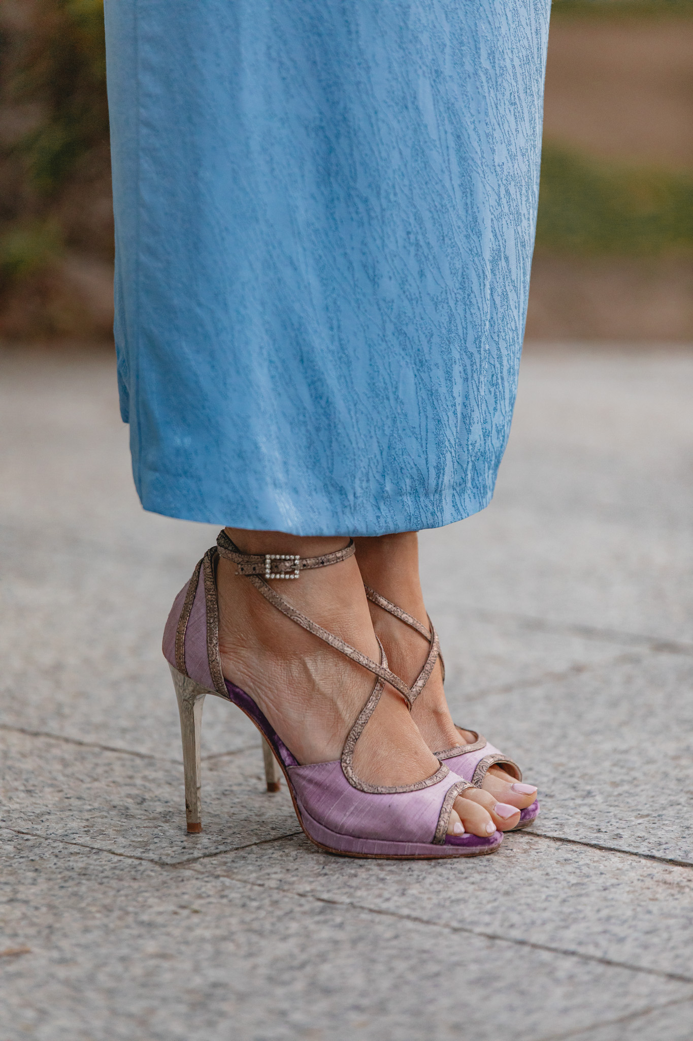 Los pendientes en lila con perla de Acus Complementos son otra maravilla que encaja a la perfección con la gama cromática del look. El bolso de Occeanis, que reúne todos los tonos del conjunto, no podía ser más acertado. Y las sandalias malva de Just Ene completan el estilismo con ese toque delicado y femenino que tanto me gusta.