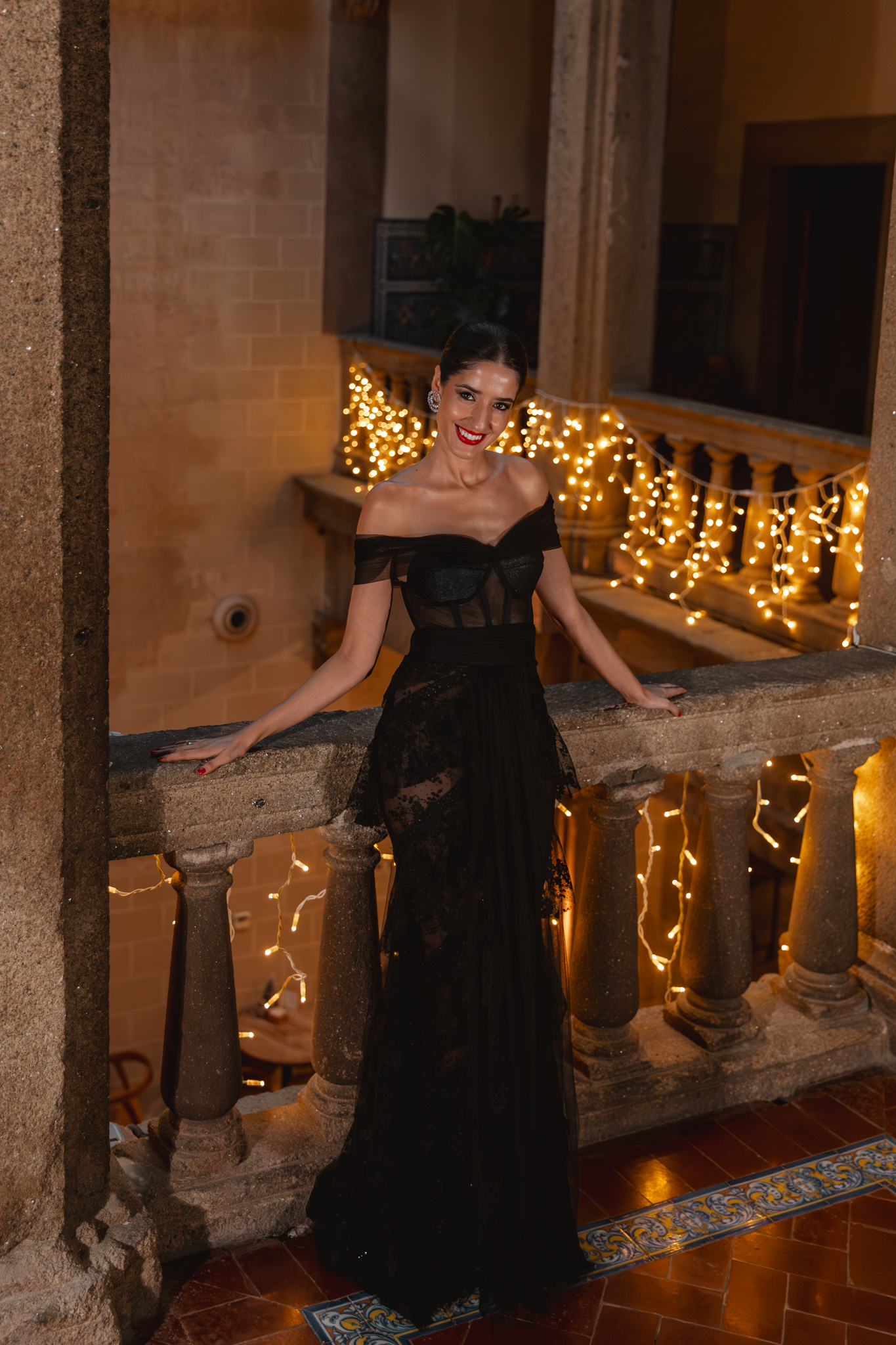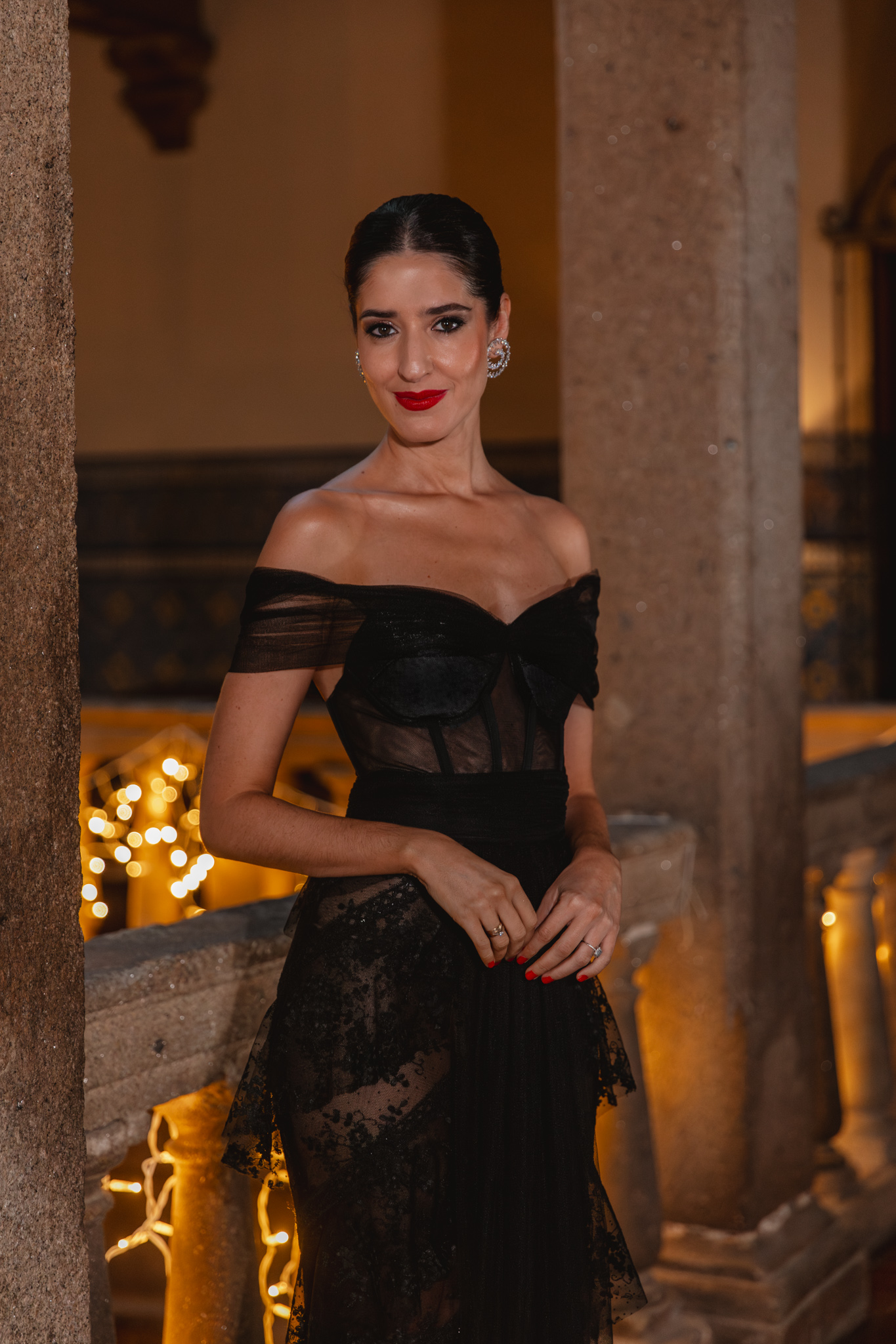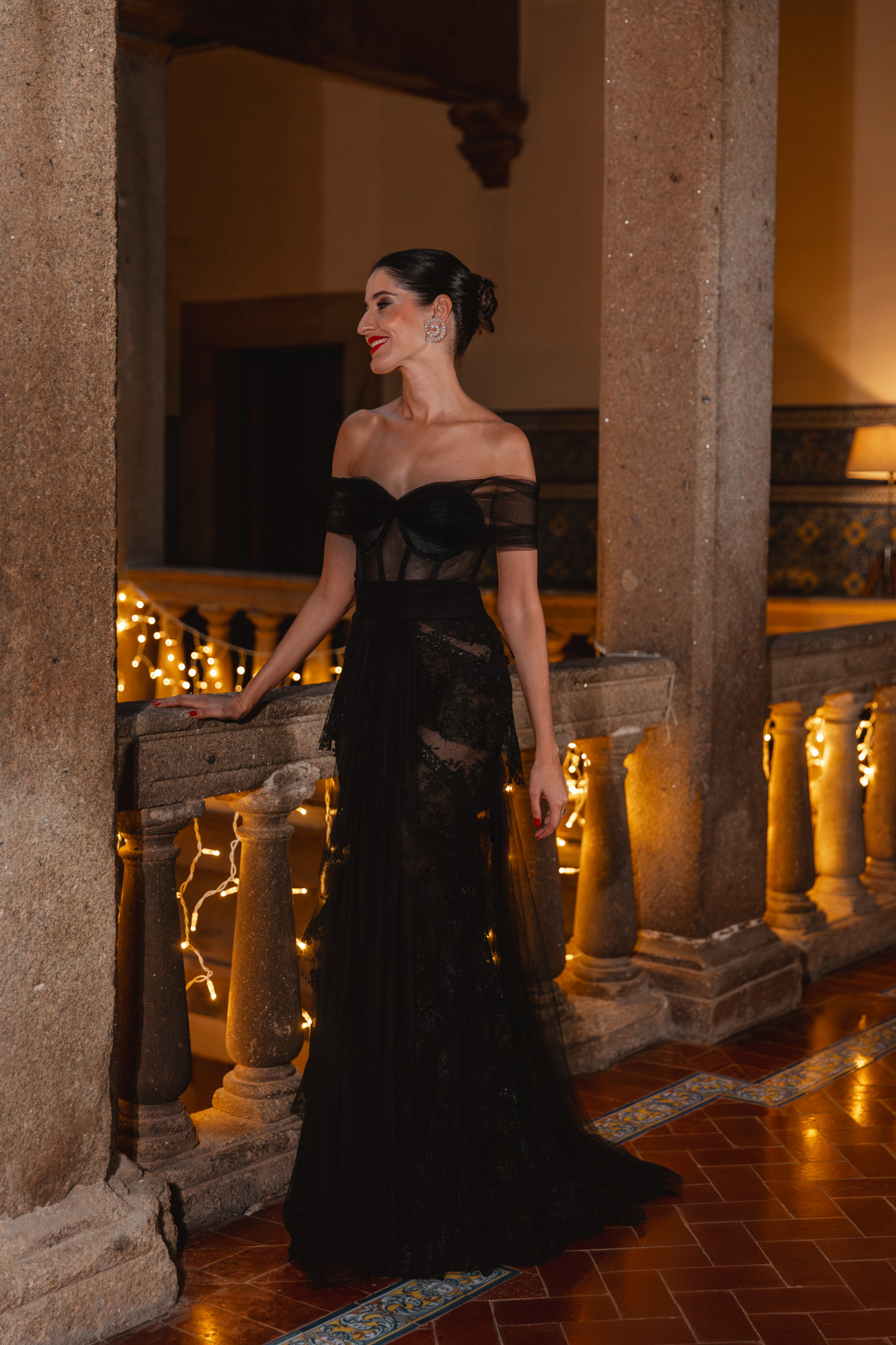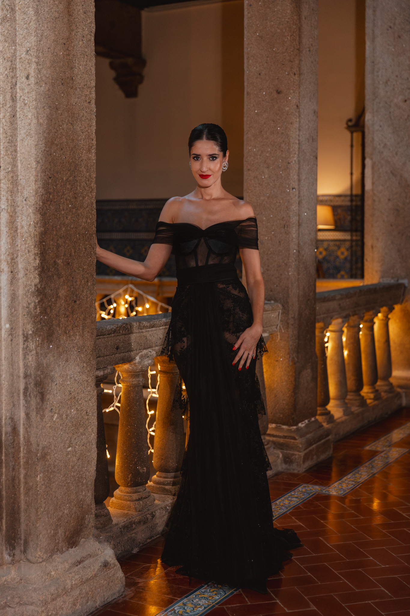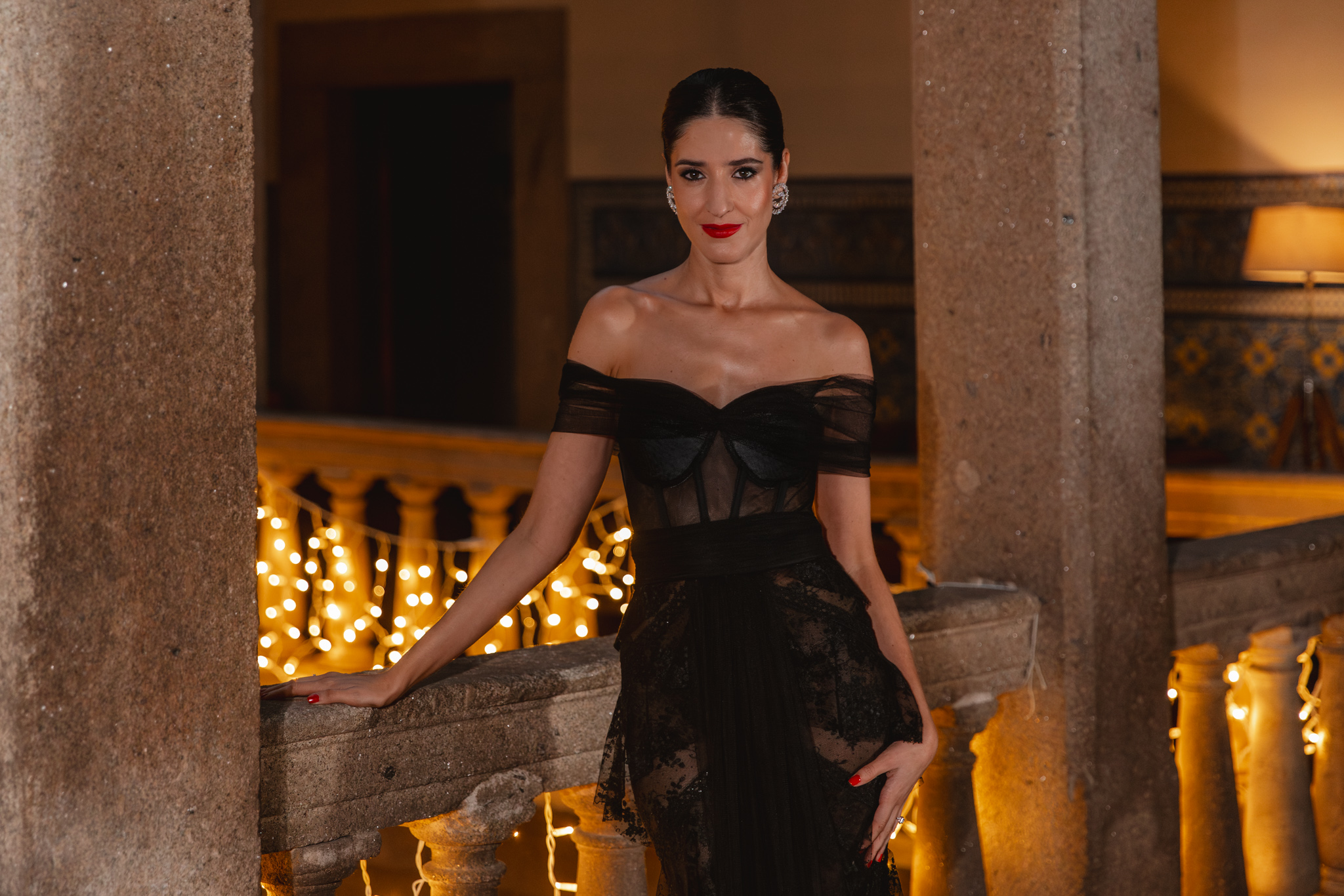 El maquillaje y el peinado corrieron a cargo de Marta Gamarra, con una propuesta que buscaba equilibrio y sofisticación relajada. Un recogido pulido con mechones sueltos aportaba movimiento y modernidad, mientras que el maquillaje se centró en potenciar la luminosidad del rostro, con una mirada intensa y labios con carácter, pero sin restar protagonismo al vestido.